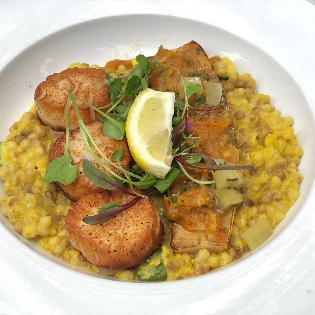Moving on to entrees, the grilled daily catch is a definite highlight; it's skillfully prepared, ensuring that the freshness of the seafood shines through. Accompanied by broccolini and a delicate rice, every bite feels like a celebration of the ocean bounty. Meanwhile, the rich Grits & White Cheddar and bacon grit cakes meld Southern comfort with modern flair. Vegetarians will relish the Spring Risotto, featuring creamy arborio rice adorned with fresh sweet corn and asparagus—each forkful is a delightful medley of flavors and textures.